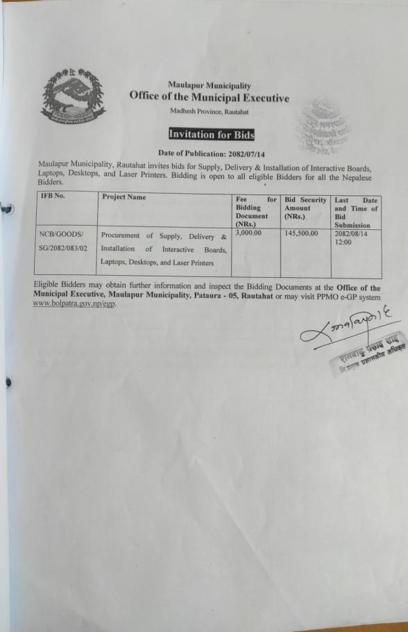 » Invitation for Bids: Supply, Delivery & Installation of ICT Equipment – Maulapur Municipality